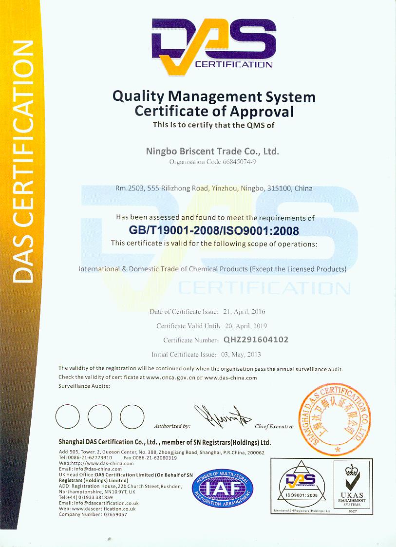 ISO9001:2008 certification is updated successfully, new Certificate is authorized!